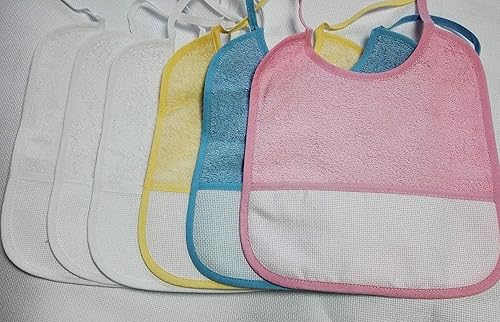 Mc 6 Bavoirs à Broder avec Poche Taille 6 Mois / 1 an à Personnaliser au Point de Croix