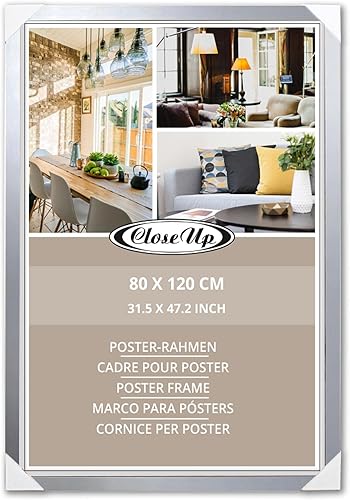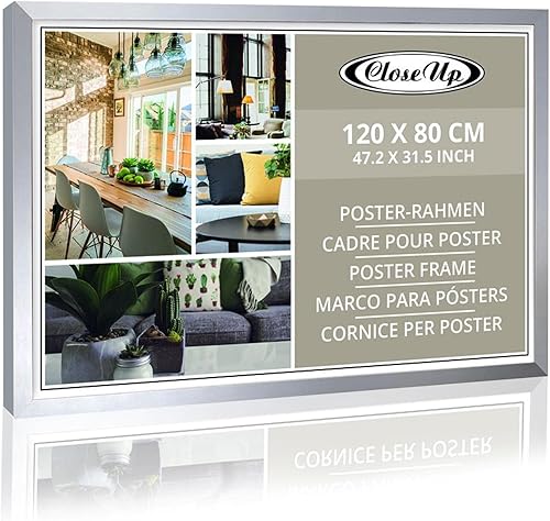 Close Up Cadre XXL 80 x 120 cm, argenté, MDF de qualité supérieure, verre PVC incassable, avec paroi arrière