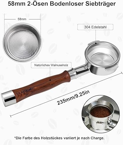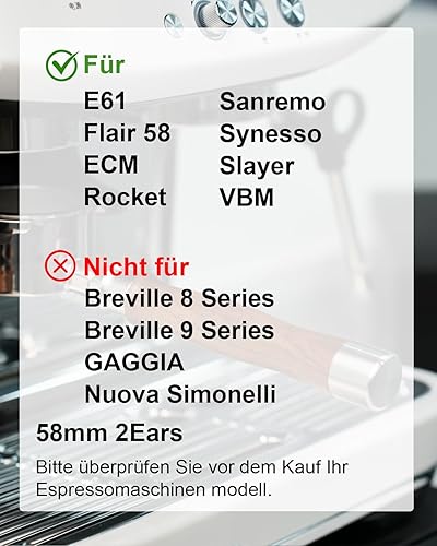 KOFIKOFI Porte-filtre sans fond de 58 mm, 2 oreilles, filtre Porta Bottomless pour tête de brassage E61, Flair 58, ECM, Rocket, Sanremo, Synesso, Slayer, machine à expresso VBM avec panier filtrant en