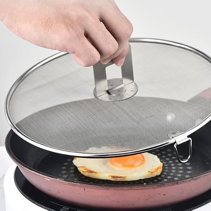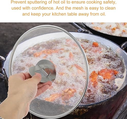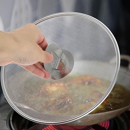 Luxshiny ÉCran Anti-éClaboussures En Acier Inoxydable Pour Cuisine, 21cm Couvercle Anti Eclaboussure Grille Anti Éclaboussures Poêle en Acier Inoxydable avec Poignée pour Poêle