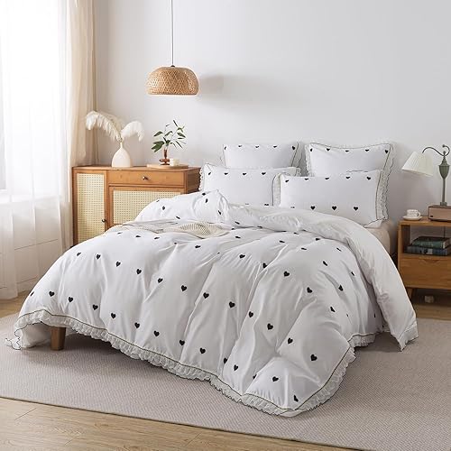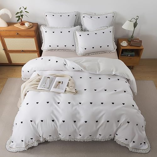 ZTYROLJ Housse de Couette 220x240cm Cœur Noir avec Fermeture Éclair - Parure de Lit Adulte pour 2 Personnes avec 2 Taies d'oreiller 65x65cm
