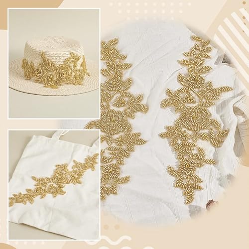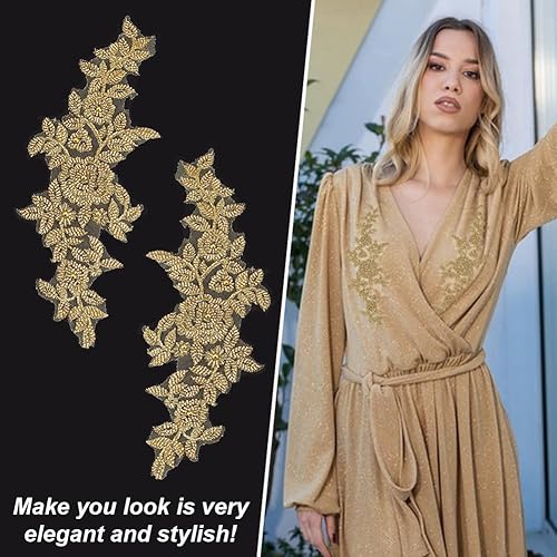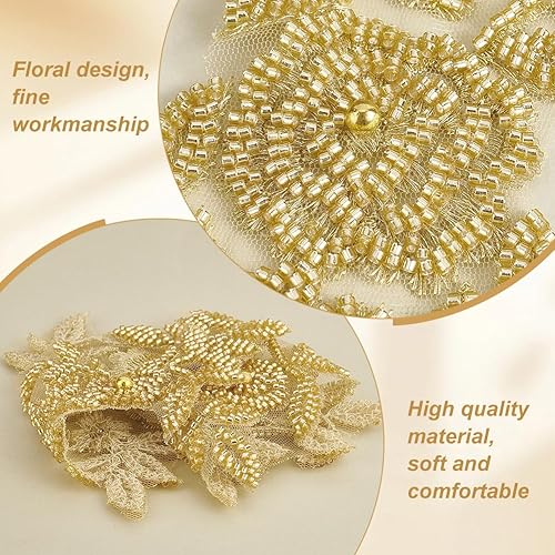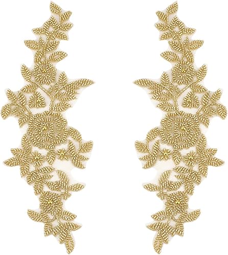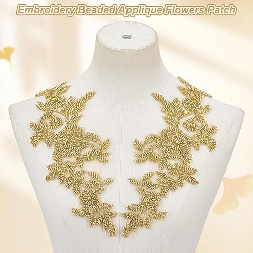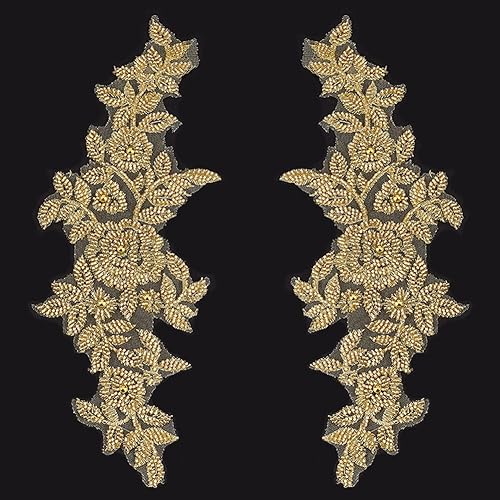 AHANDMAKER 1 paire d'appliques brodées en tissu floral avec perles en dentelle et strass pour loisirs créatifs, couture, décoration de robe
