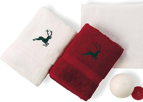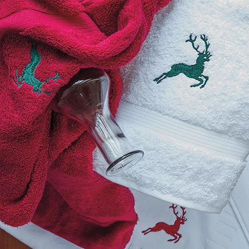 Linnea Serviette invité 30x50 cm HIRSH Blanc/Vert 600 g/m2