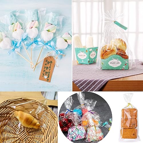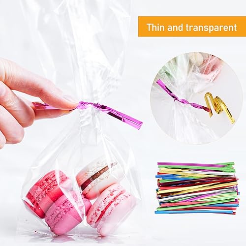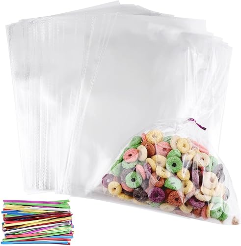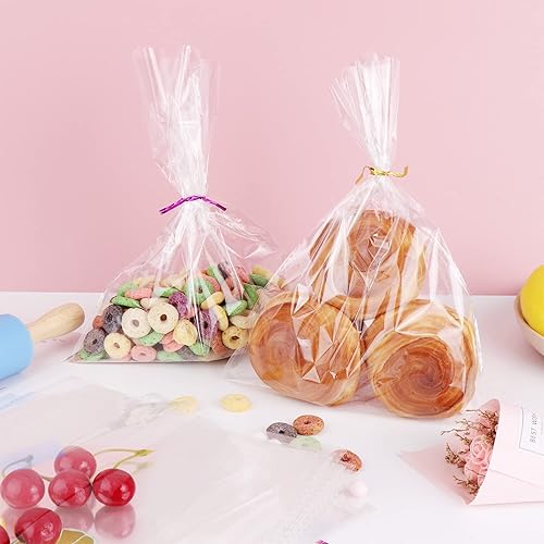 Sac Plastique Transparent 200pcs Sac OPP 20x28cm Sachet Bonbon en Cellophane Sachet Transparent Cadeau avec 200 Liens Torsadés pour Biscuit Bonbons Perles Bijoux Chocolats Cadeau