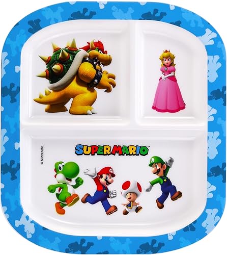 Zawadi Global Super Mario Assiette à 3 sections réutilisables pour petit déjeuner et enfant