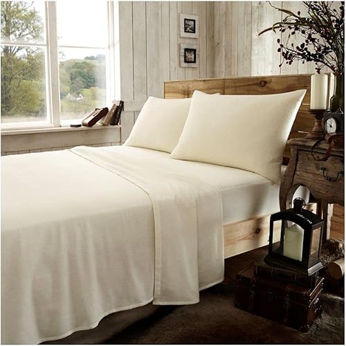 GC GAVENO CAVAILIA Drap Plat uni en Flanelle de qualité supérieure, 100% Coton brossé, Facile d'entretien, Doux et Confortable, crème, très Grand lit, King
