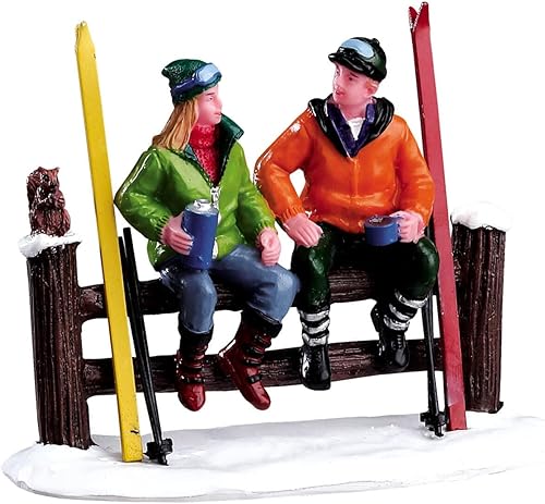 Magie di Natale Skieurs qui boivent du café au fond de la piste Figurines pour le village de Noël en polyrésine