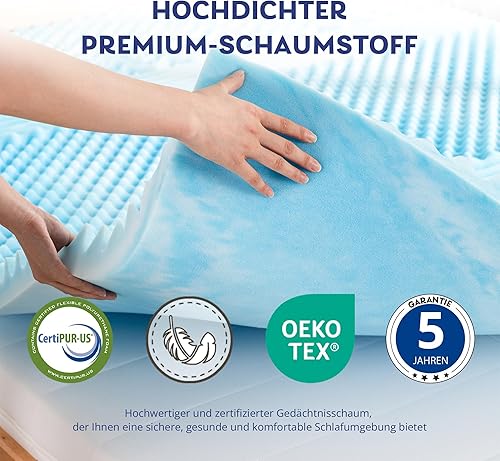 EGO HOME Surmatelas 90 x 190 cm, Hauteur 5 cm, 7 Zones, en Mousse, certifié CertiPUR UE, sans Housse, pour lit à sommier tapissier, Matelas, canapé-lit