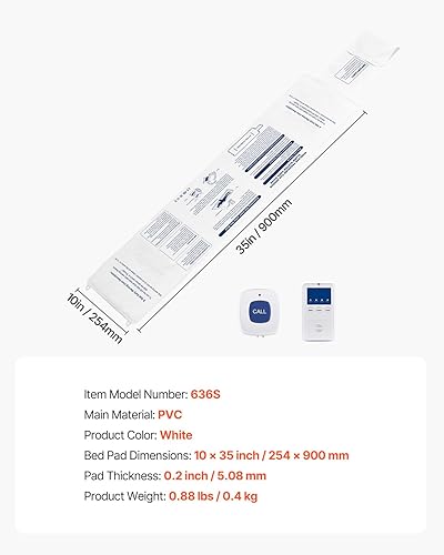 VEVOR Tapis Alarme de Sortie de Lit, Capteur de Surveillance de Lit sans Fil, avec Bouton Appel, Téléavertisseur, Prévention Chutes, Alerte Précoce pour Personnes Âgées, Patients Atteints de Démence