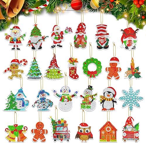 LYLIDIA Diamant Painting Pendentif Noël 25 Pièces Sapin Pendentif Diamant Peinture Portes-Clés Noël Diamond Art Painting Keychain Pendentifs d'arbre de Noël