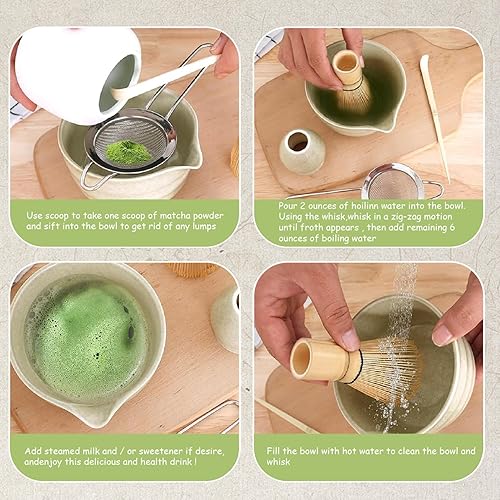 KYEQATY Ensemble de Matcha en Bambou en céramique Matcha Comprend la cuillère à thé