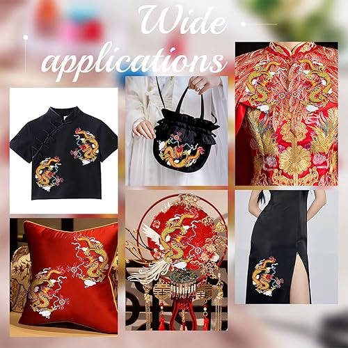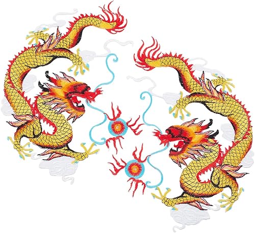 nbeads 4 Pcs Appliques Brodées de Dragon nois, Patchs de Broderie Fer sur Patchs Coudre sur Patchs Patchs en Dentelle Dorée pour Robe Mariée Décor Réparation Vêtement Sacs à Dos Jeans Casquettes