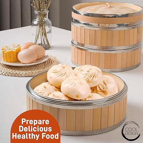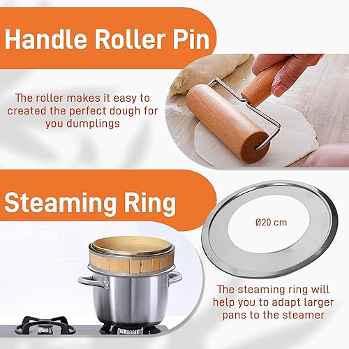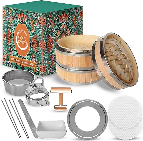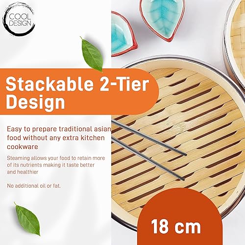 COOL DESIGN Set de cuisson à la vapeur, Panier vapeur Bambou reforacée, tout ce dont vous avez besoin pour faire des gyozas, des dumplings, Panier vapeur Bambou, cuisine saine