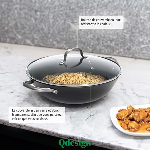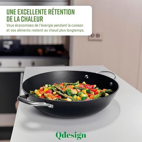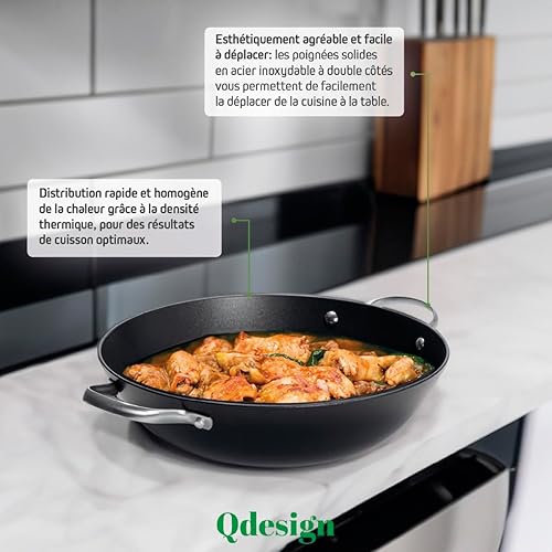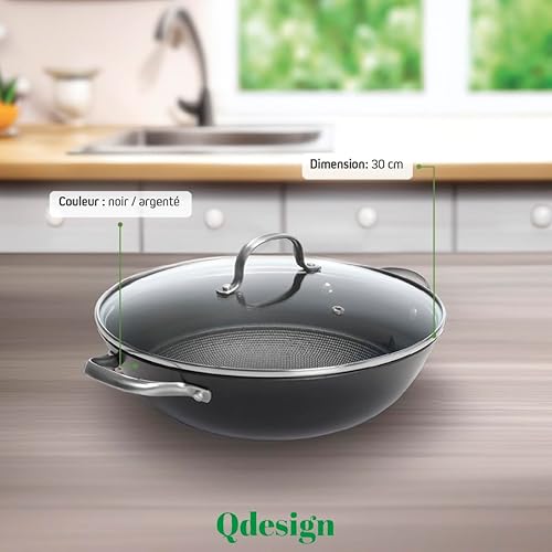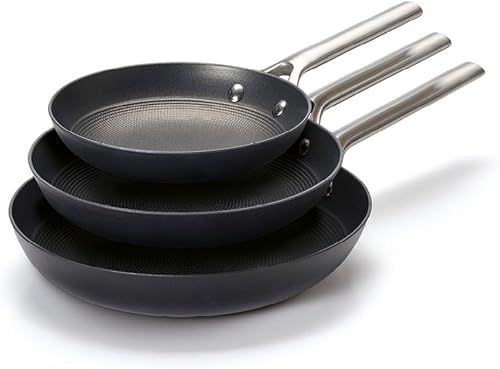 Qdesign - Lot de 3 Poêles 20 + 24 + 28 cm - Structure Nid d’Abeille - Matériau 3 Couches - Anti-Rayures et Anti-Adhésif - Tout Feu - Cuisson Saine - Noir