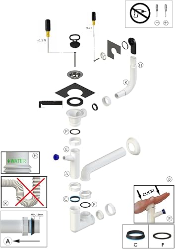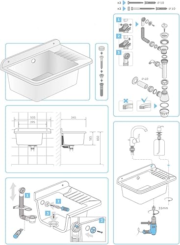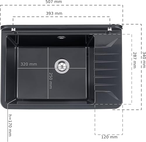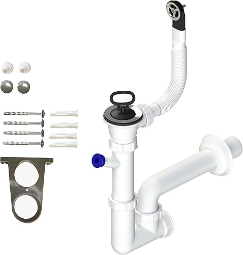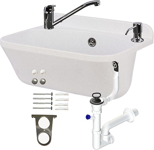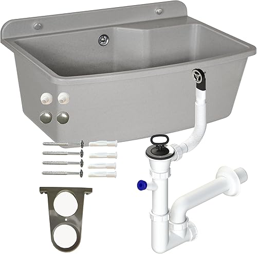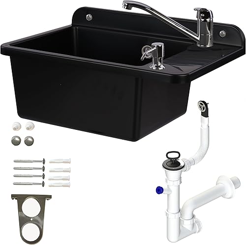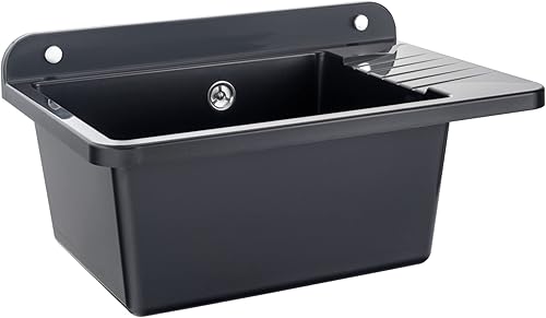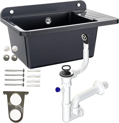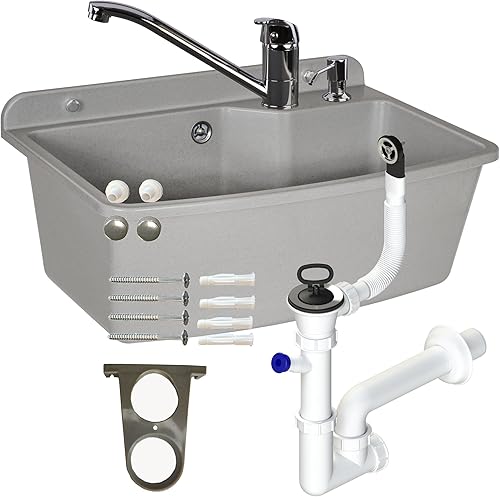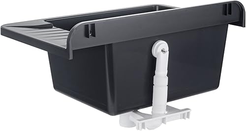 Lavabo avec siphon en plastique gris granit - 61 cm de long - Installation d'eau - Cuisine - Salle de bain robuste