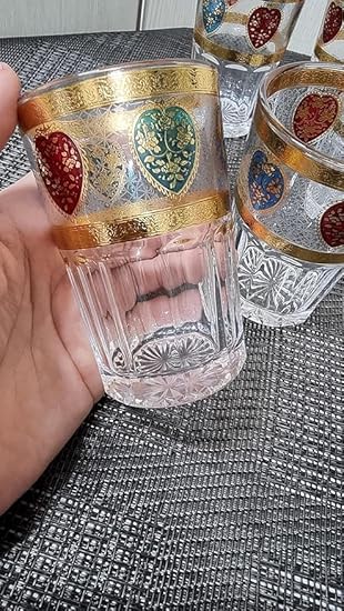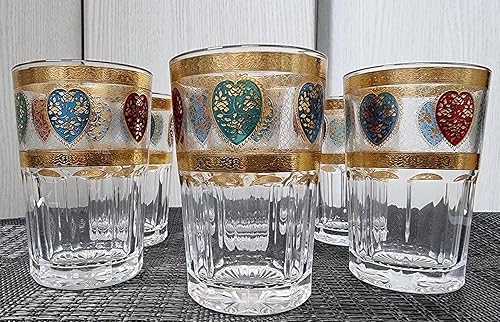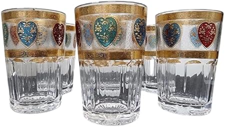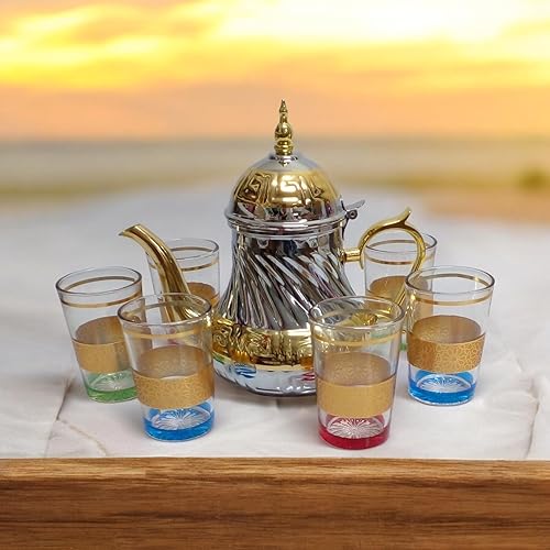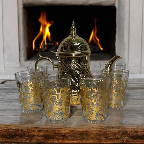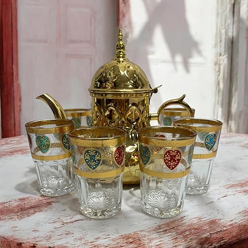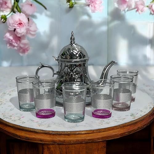 Lot de 1 théière de 48 oz et 6 verres élégants à thé marocain de 150 ml, tasses à thé persan arabe pour servir café, expresso (rose)