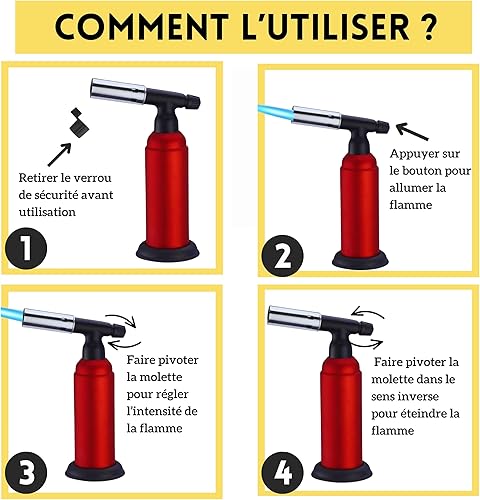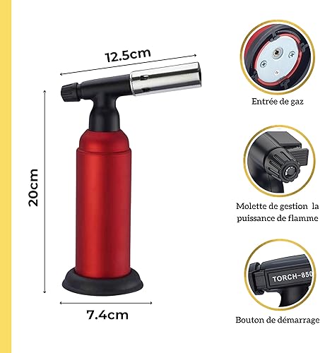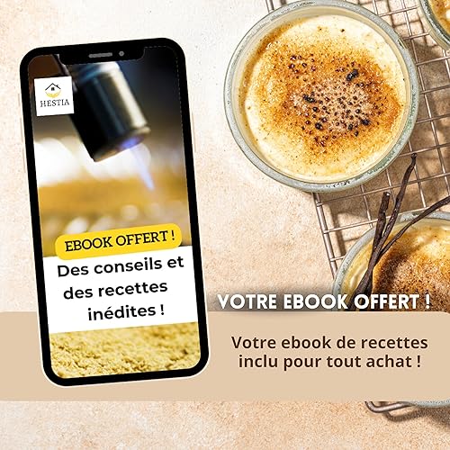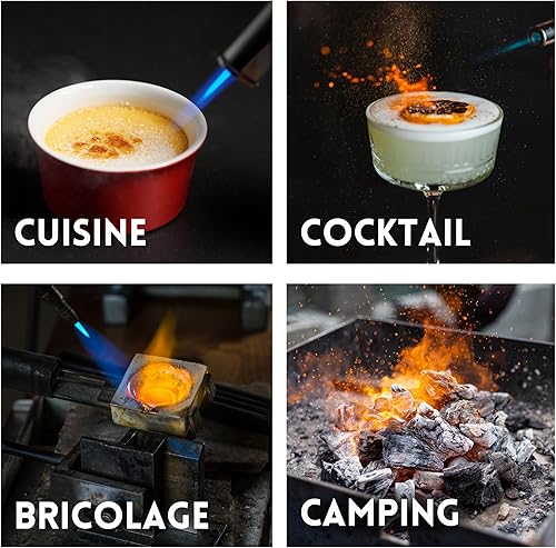 Chalumeau de Cuisine Haut de Gamme | Grande Capacité | Livre de Cuisine Numérique | Facile à Utiliser | Fonctionnement au Gaz Butane | Rechargeable | Plats, Desserts, Crèmes Brûlées I Gaz non inclus