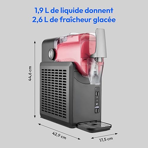 MEDION Machine à granité (boissons glacées, capacité 2,6 L, réservoir 1,9 L, slush machine pour boissons, 5 modes de boisson, machine a glace, préparation en 30–60 min, compresseur, MD12090)