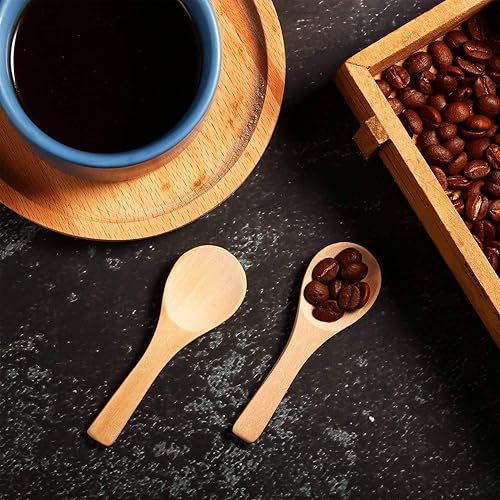 Puooifrty 30 PièCes Petites CuillèRes en Bois Mini CuillèRes en Bois de DéGustation Condiments à Sel pour Cuisine Assaisonnement Café Thé Sucre (Couleur Bois Naturel)