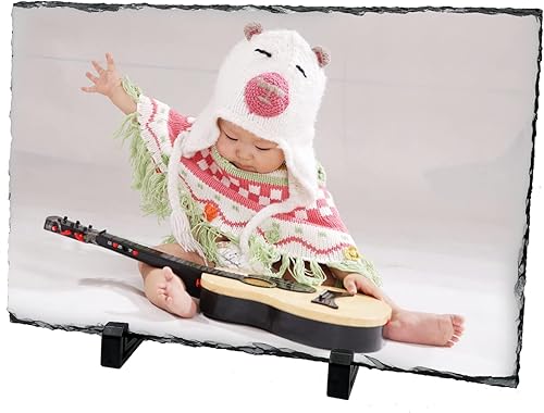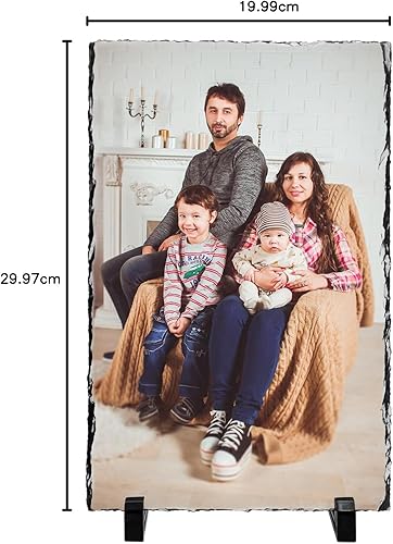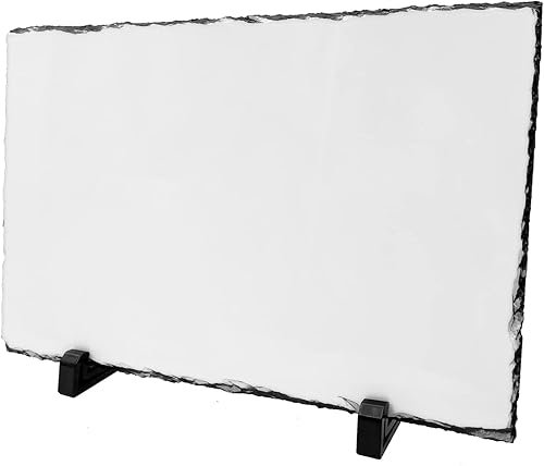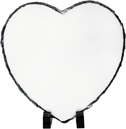 LYHLYA Cadre commémoratif personnalisé en forme de cœur d'ardoise vierge avec supports de présentation pour impression par transfert thermique - 20 x 20 cm