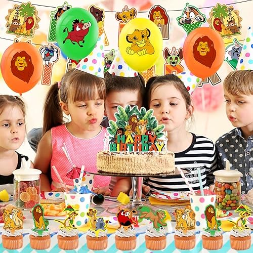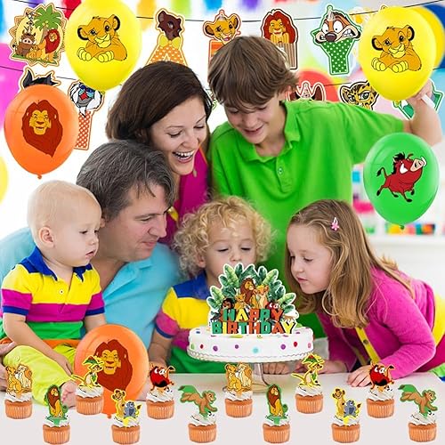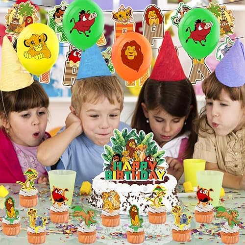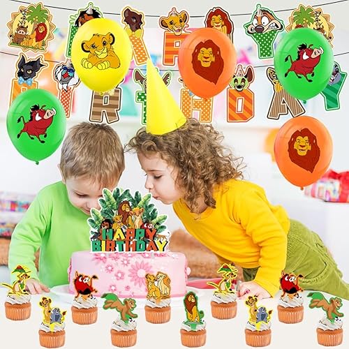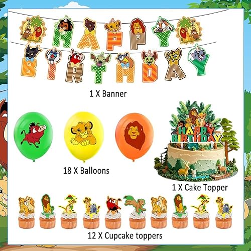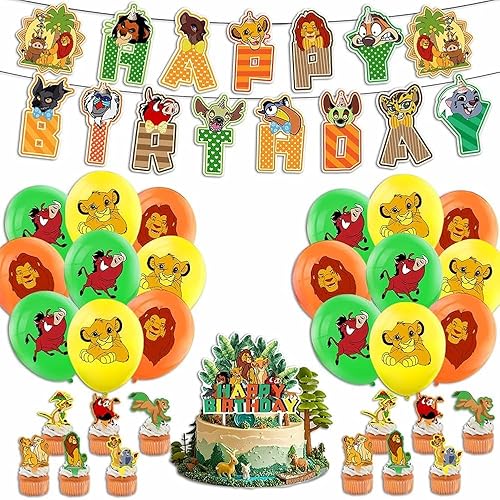 Lot de 32 Ballons de Fête D'anniversaire sur le Thème du Le Roi Lion - Décoration de Fête D'anniversaire D'enfant - Ballon en Latex Avec Bannière Happy Birthday - Pour Garçons et Filles