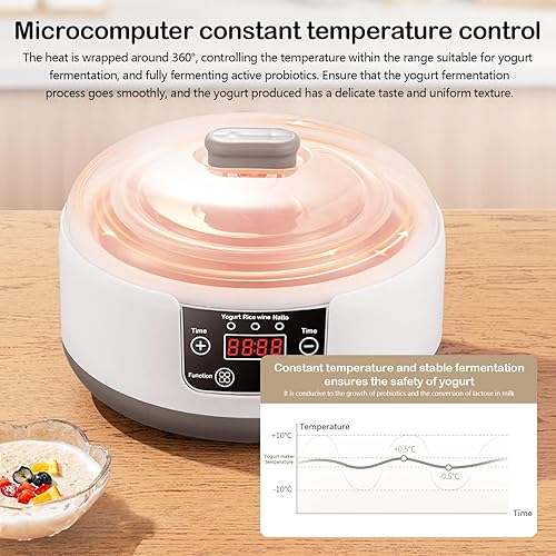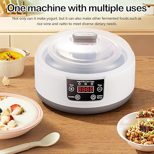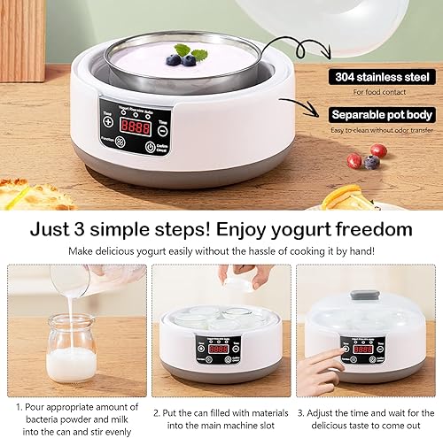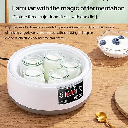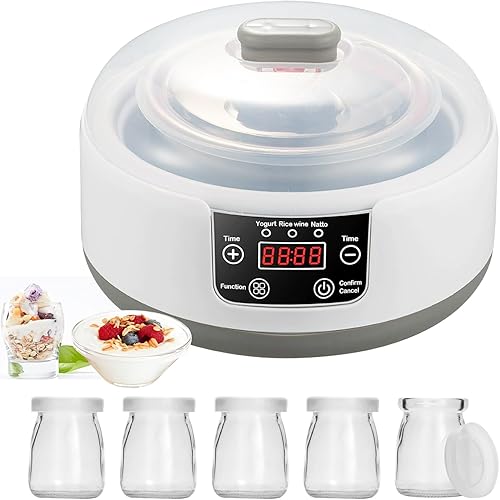 Yaourtière, Machine à Yaourt Yaourtiere avec Bol à Yaourt en Acier Inoxydable et 5 Pots de Yaourt 220V 15W Yaourtière Yaourt Grec Fait Maison pour Yaourt Bio Sucré ou Sans Sucre