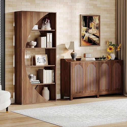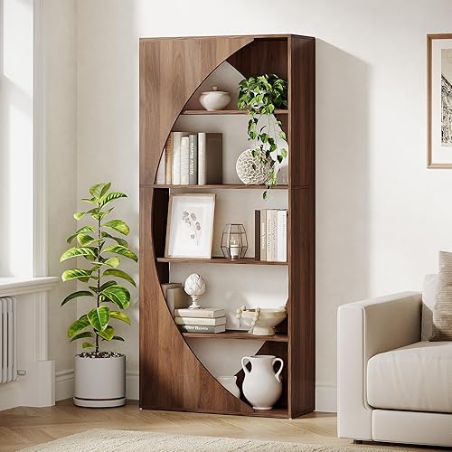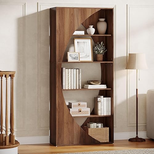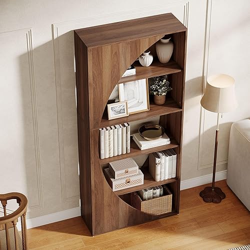 Tribesigns Bibliothèque moderne à 5 niveaux - 180 cm - En bois - Pour salon, chambre à coucher, bureau à domicile - Noyer