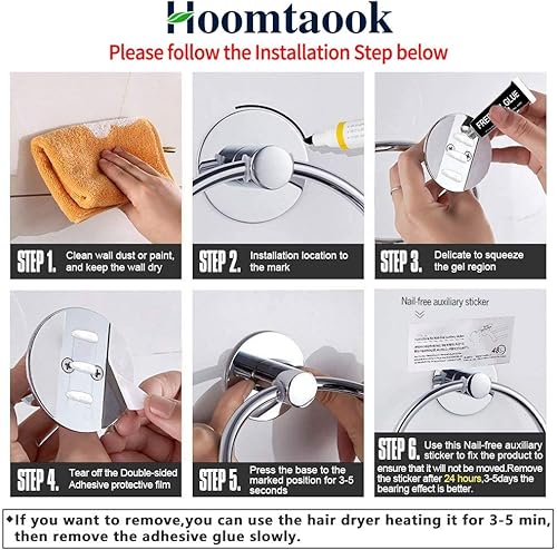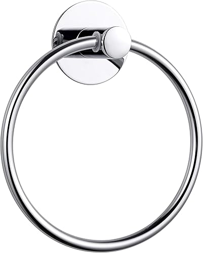 Hoomtaook Porte Serviette Adhesif Salle de Bain Fort Anneau Porte-Serviette, Acier Inoxydable, Le Chromé