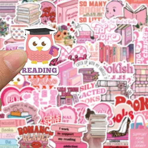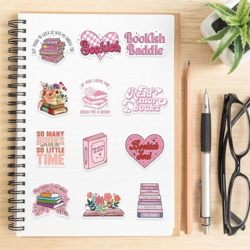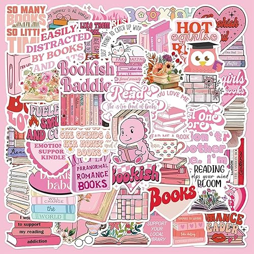 Vroxdrez Lot de 50 Autocollants Bookish - Kawaii Décoratifs Imperméables Style Rose, pour Kindle Ordinateur Portable Skateboard, Casque Moto, Valise