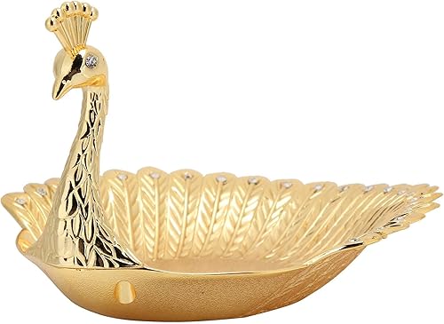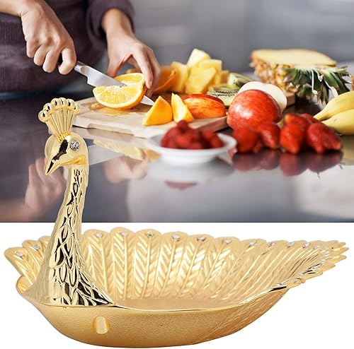 Plateau de Collation en Métal, Plateaux à Fruits en Métal Plateau Métallique en Forme de Paon Plateau de Service de Nourriture d'or De Paon pour des Ornements de Décorations à la Maison