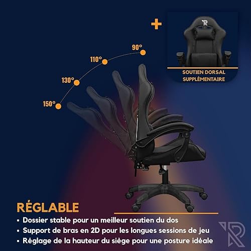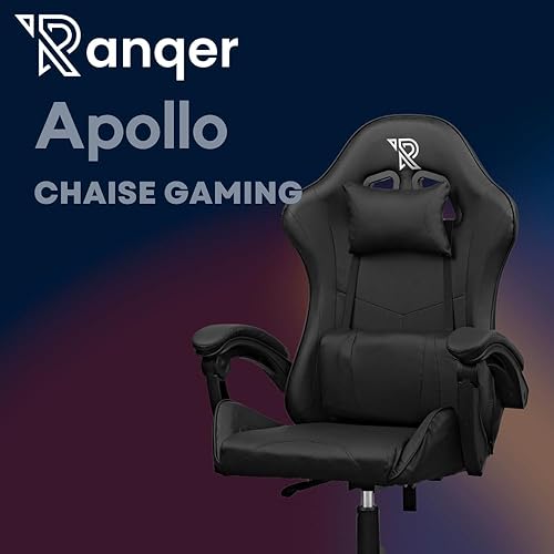 Ranqer Apollo Chaise Ergonomique Fauteuil Gamer ou Bureau de Haute qualité en Similicuir Noir avec Soutien de Dos et Nuque rembourré de Mousse