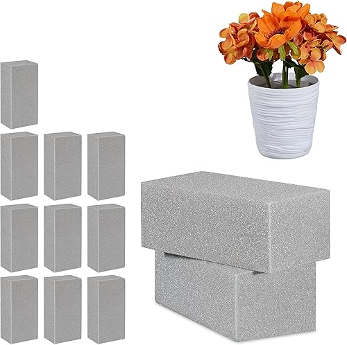 Relaxdays Mousse Florale pour Les Fleurs sèches, Lot de 12 Briques, Mousse d’Arrangement, Mariage, 8x22,5x10,5 cm, Gris