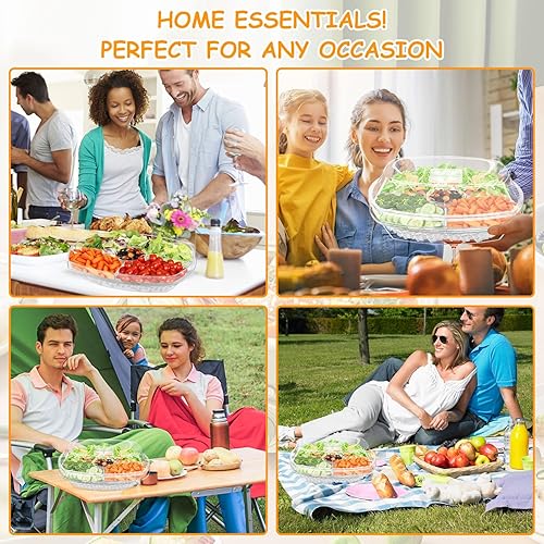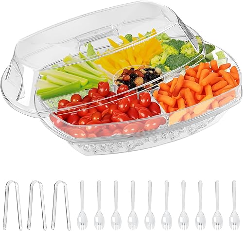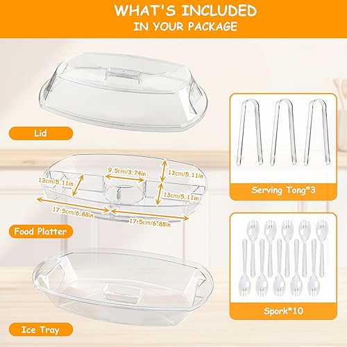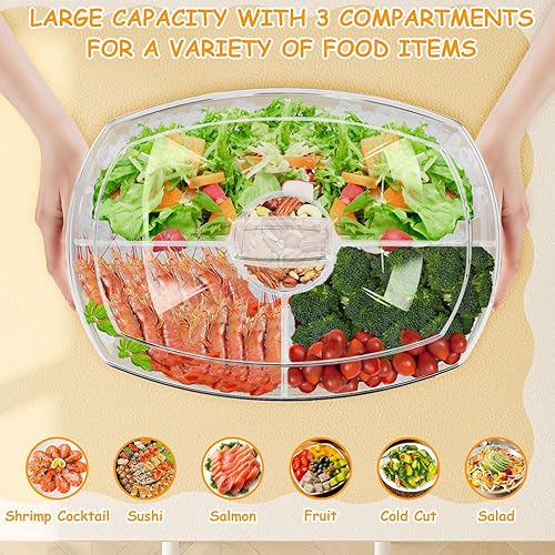 Qivine Plateau de vaisselle de service à 3 niveaux Restez au frais Boîte à collations avec couvercle boîte à collations ovale degrés pour contenir des fruits collations et légumes