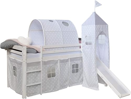Homestyle4u Tunnel de lit Enfant Coloris Gris Motif Etoiles