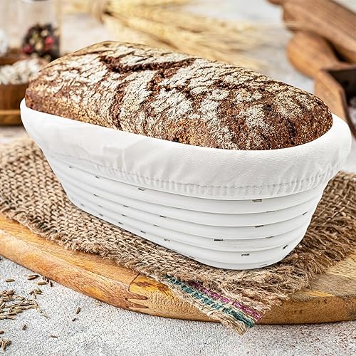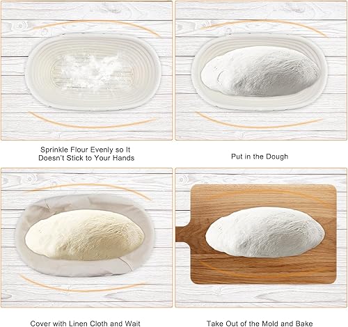 Zeripikfoasp Corbeille a Pain, Banneton Ovale Avec Doublure En Lin, Banneton En Rotin Naturel Faits Main,Panier Fermentation Pain Set, Paniere a Pain, Kit Boulangerie, pour Faire Du Pain Traditionnel