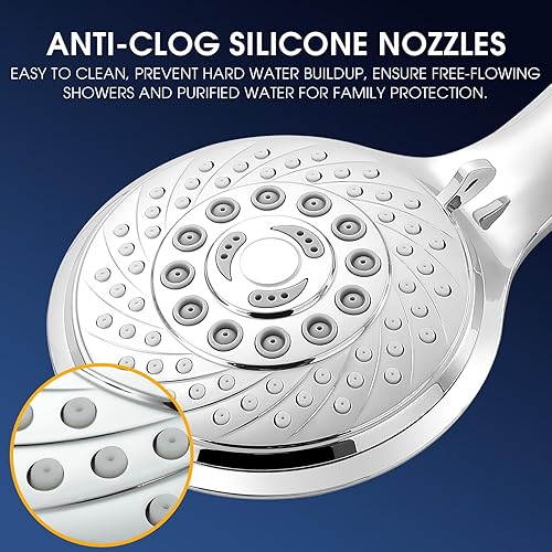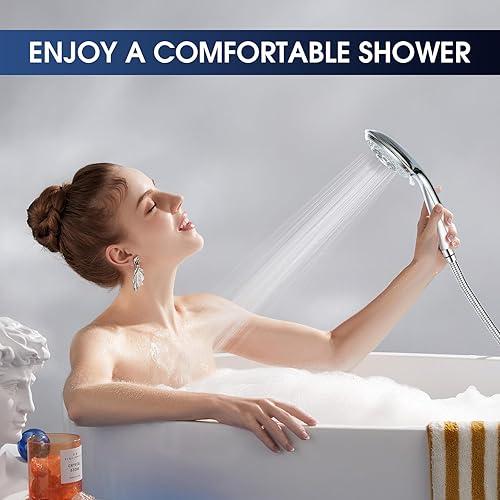 Pomme de douche et tuyau haute pression, pommeau de douche universel puissant à économie d'eau, ensemble avec 6 modes de pulvérisation et tuyau de douche de 2 m de long (pommeau de douche et tuyau