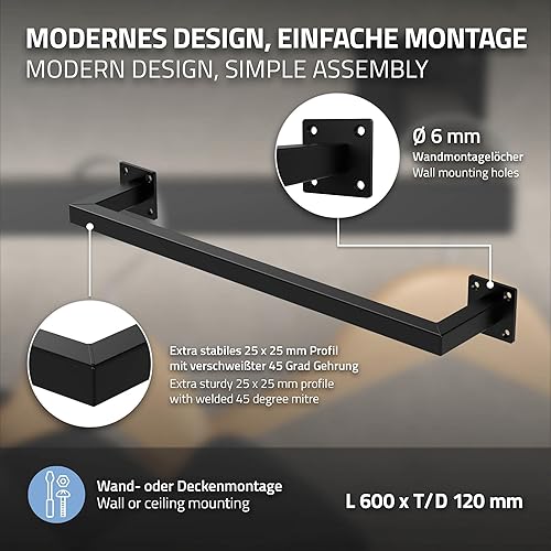ML-Design Tringle à Vêtements Rectangulaire, P30 x L110 cm, Noir, Acier Inoxydable, Tringle de Penderie Forme de U, Portemanteau à Montage Mural, Porte-vêtements, Tringle à Linge + Matériel de Montage