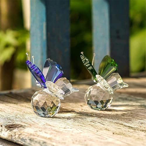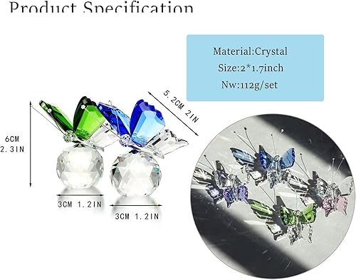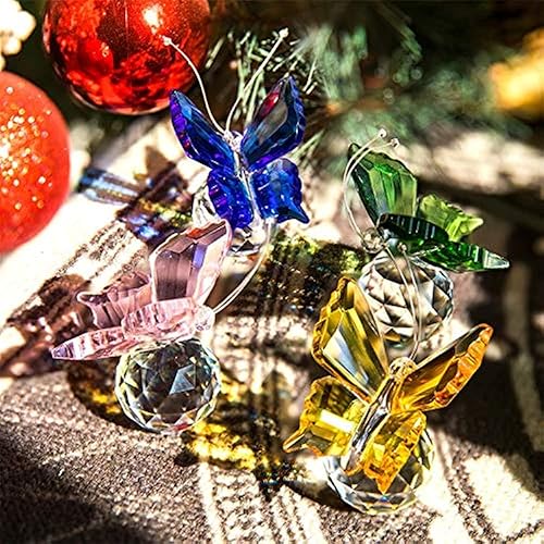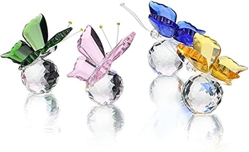 Lot de 4 figurines de papillons volants en cristal avec base en forme de boule – Objets de collection en verre découpé pour décoration de maison, de mariage et de table de bureau