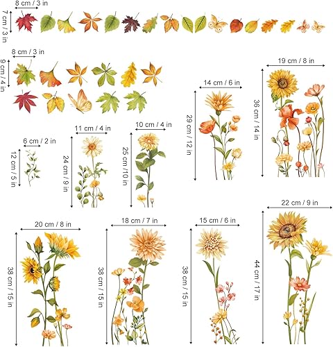 decalmile Autocollants Fenêtre Automne Fleur Feuille Anti-Collision Stickers Été Tournesol Floral Papillon Stickers Vitre Anti-Adhésifs Fenêtre Porte Chambre Décalques