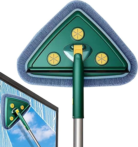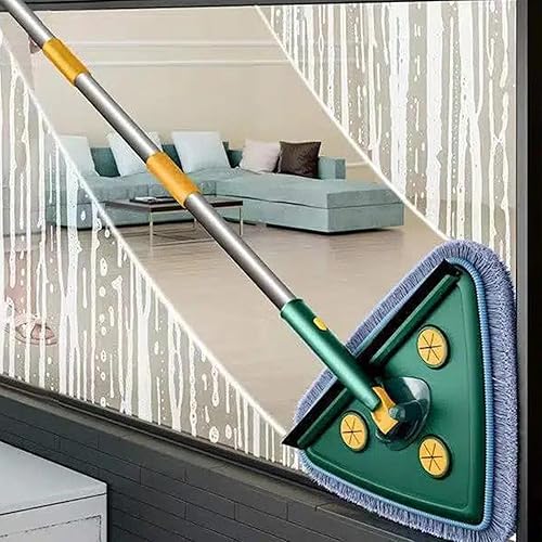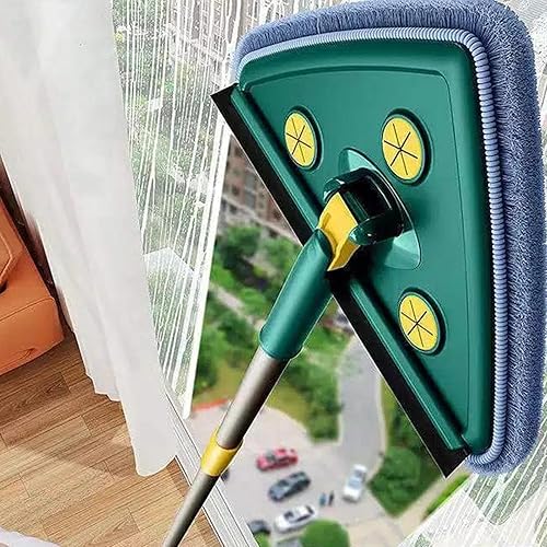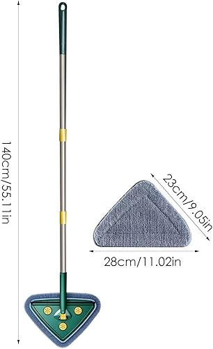 JINGAN Triangle serpillère en microfibre Triangulaire pivotant à 360 degrés avec lave-glace pour douche - Balai extensible pour le nettoyage des murs à rotation manuelle, 2 rechange