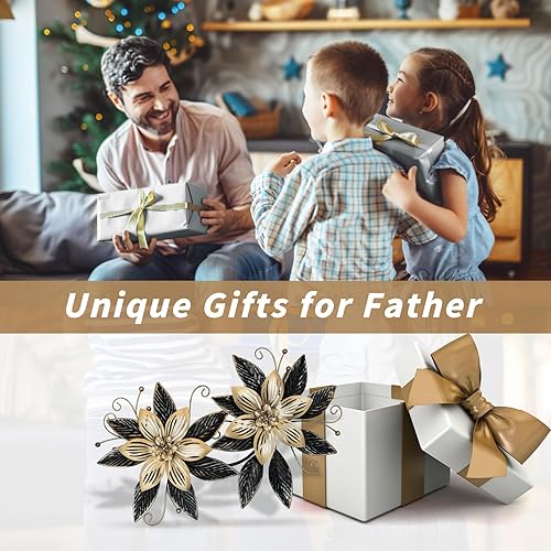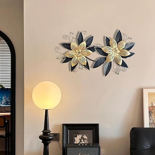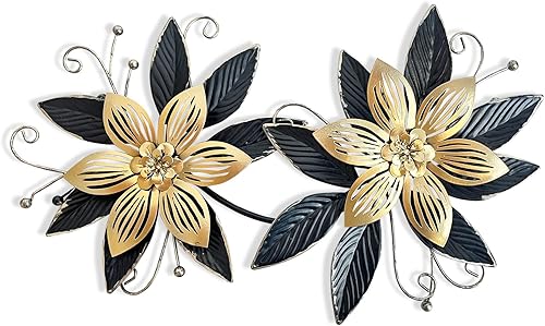 Liffy Décoration murale de fleurs en métal noir et or, art floral moderne multicouche en 3D de 15 pouces, décoration suspendue pour l'intérieur, la chambre à coucher, le salon, le jardin et le patio.