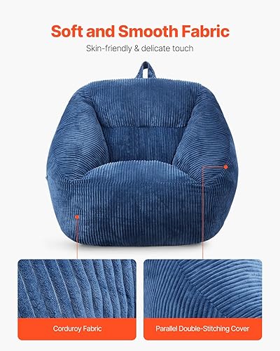 VEVOR Pouf 92 cm avec Accoudoirs Souples et Poche de Rangement, Fauteuil Paresseux Mousse à Mémoire de Forme 25D Remplie, avec Housse en Velours Doux, pour Chambre, Salle de Jeux, Salon, Blanc
