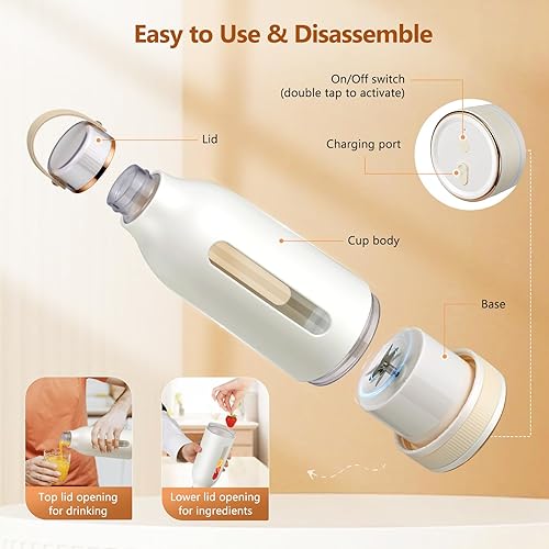 Ixdregan Bouteille de mixeur portable, mixeur électrique USB, mixeur de taille personnelle de 400 ml pour shakes et smoothies, mini mixeur pour voyage, maison, bureau, extérieur