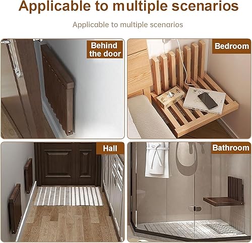 GLDWEY Chaise Pliante Murale,Banc De Tabouret D'entrée À Montage Mural,Tabouret De Salle,Siège Se Douche Rabattable en Bois Massif,Tabourets À Chaussures Pliants,pour Diverses Occasions