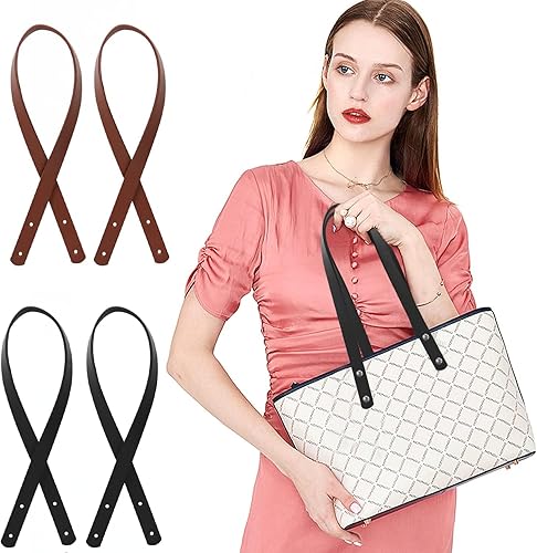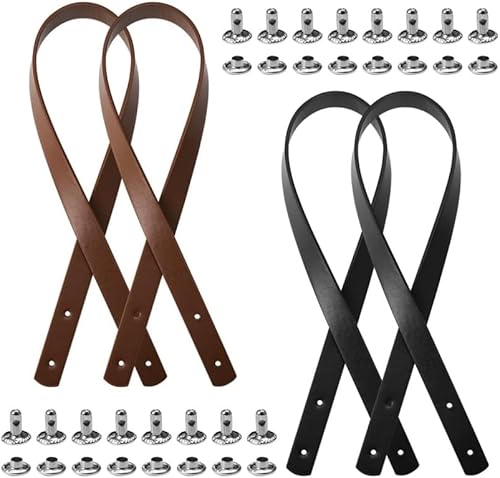 LATRAT Lot de 4 poignées de sac en cuir avec rivets, durables et interchangeables, en cuir synthétique, pour sacs à crochet, longueur