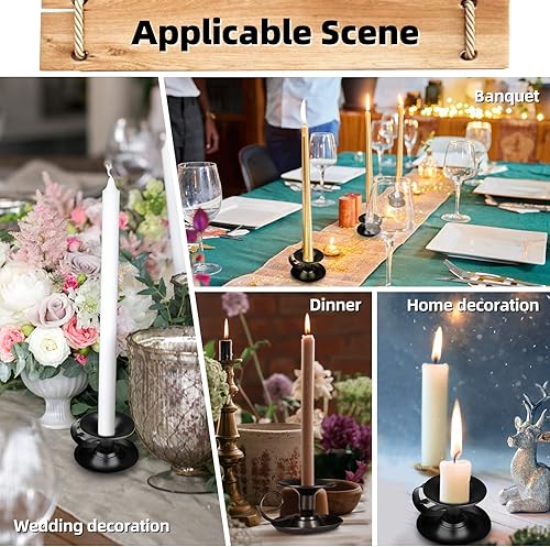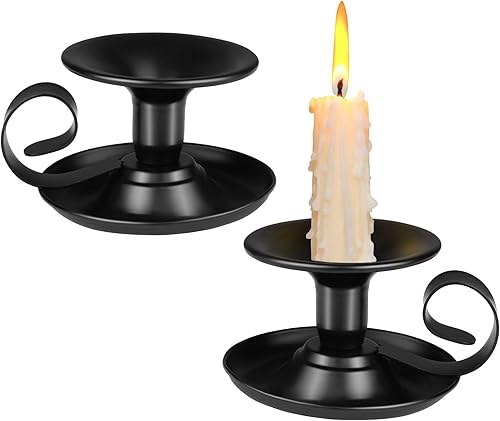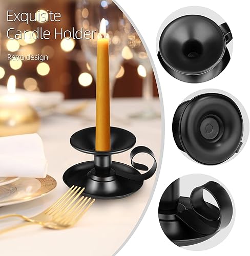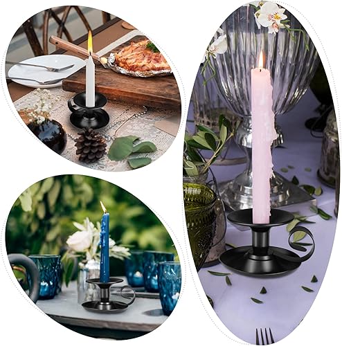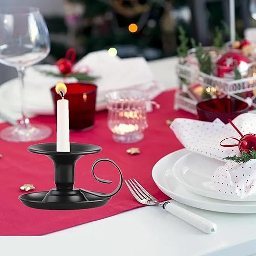 Lot de 2 bougeoirs décoratifs noirs avec poignée - En fer vintage - En métal - Pour décoration de table, mariage, salon, festival, décoration de fête