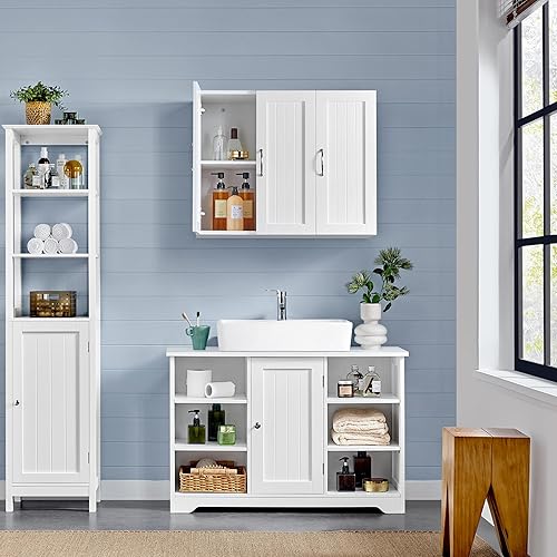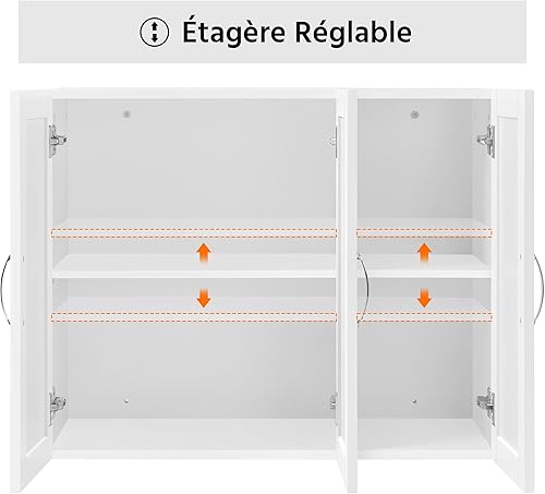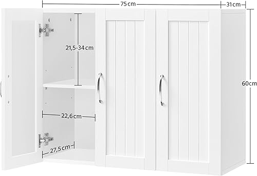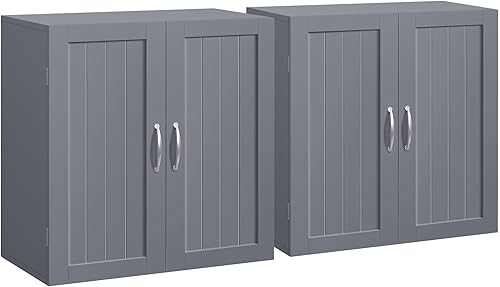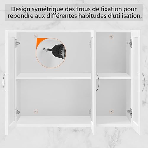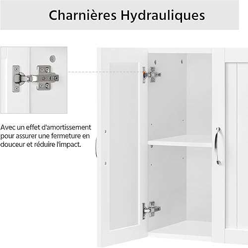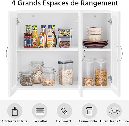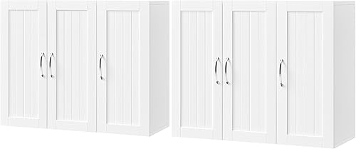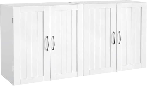 Yaheetech Lot de 2 Armoire Murale Salle de Bains Toilette Placard Commode Suspendu pour Cuisine Salon Stockage Blanc