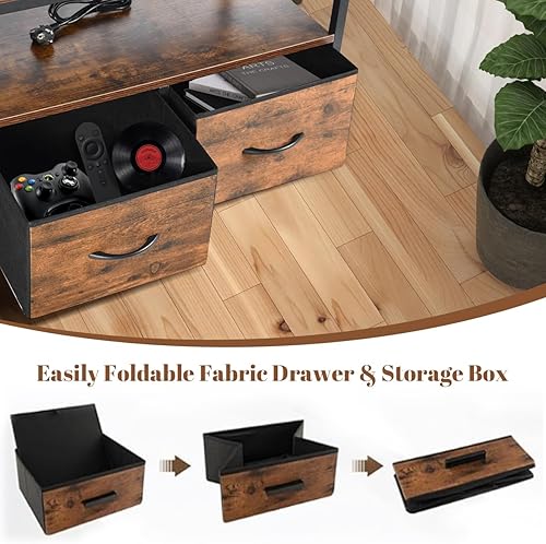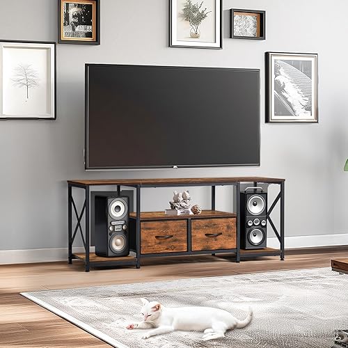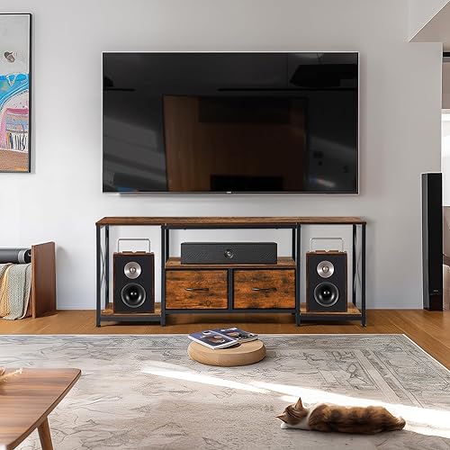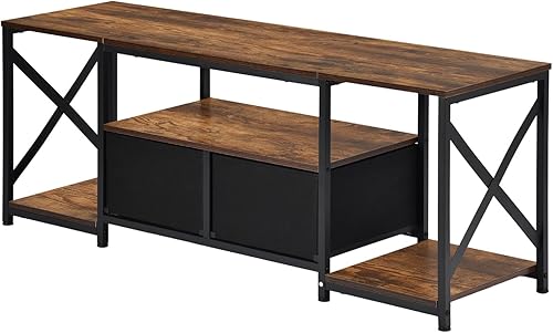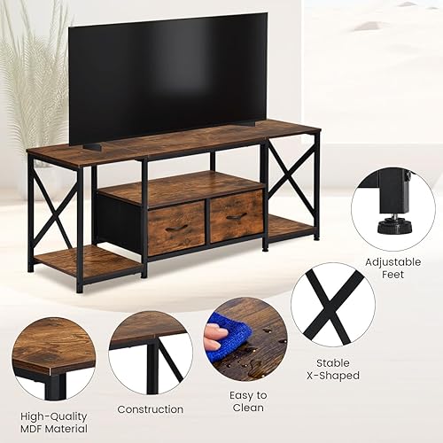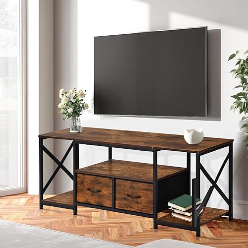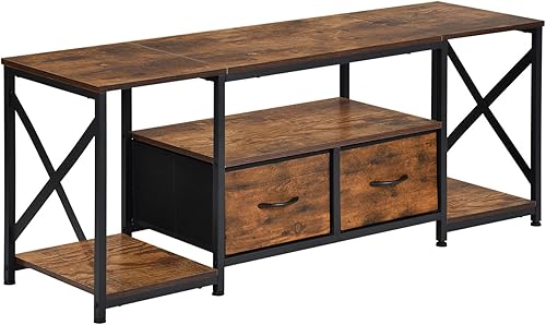 EGGREE Meuble TV Plateau Bas pour 65' TV, 140 x 40 x 54 cm,X Support TV, 2 Tiroirs Non Tissés, Plateau Bas TV pour Meuble Salon, Foncé Marron-Noir
