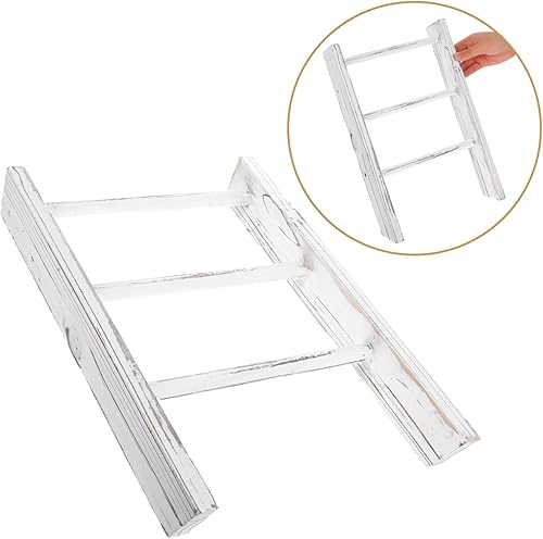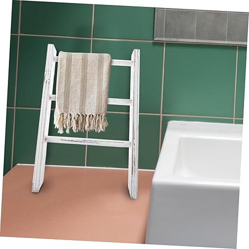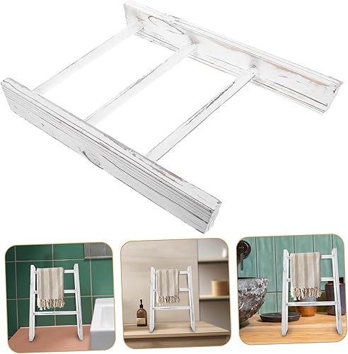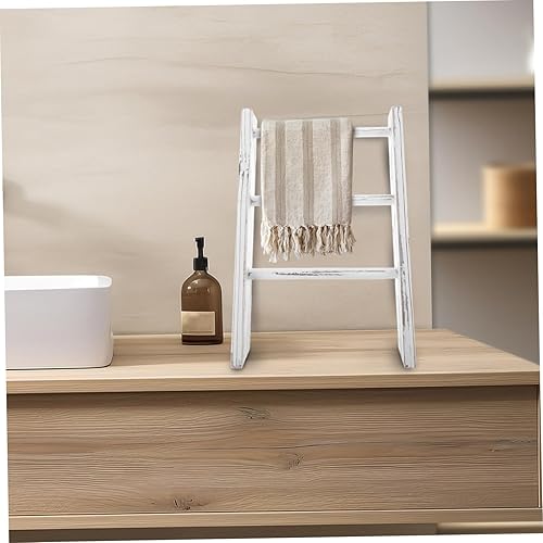 Cabilock Échelle Décorative Mini pour Serviettes De Cuisine Et Salle De Bain Porte-torchon Rustique Rack Multifonctionnel pour Décor Farmhouse Gain De Place Blanc