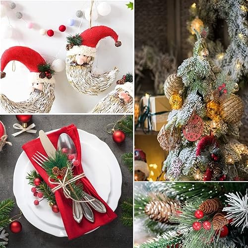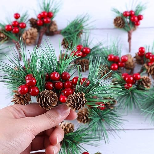 Ayuanb 20 Pcs Pics De Pin Artificiel, Noël Petites Branches de Sapin Artificielles, Branches de pin Artificielles de Noël avec Baies Rouges et Pommes de pin Naturelles, pour Guirlande de Noël